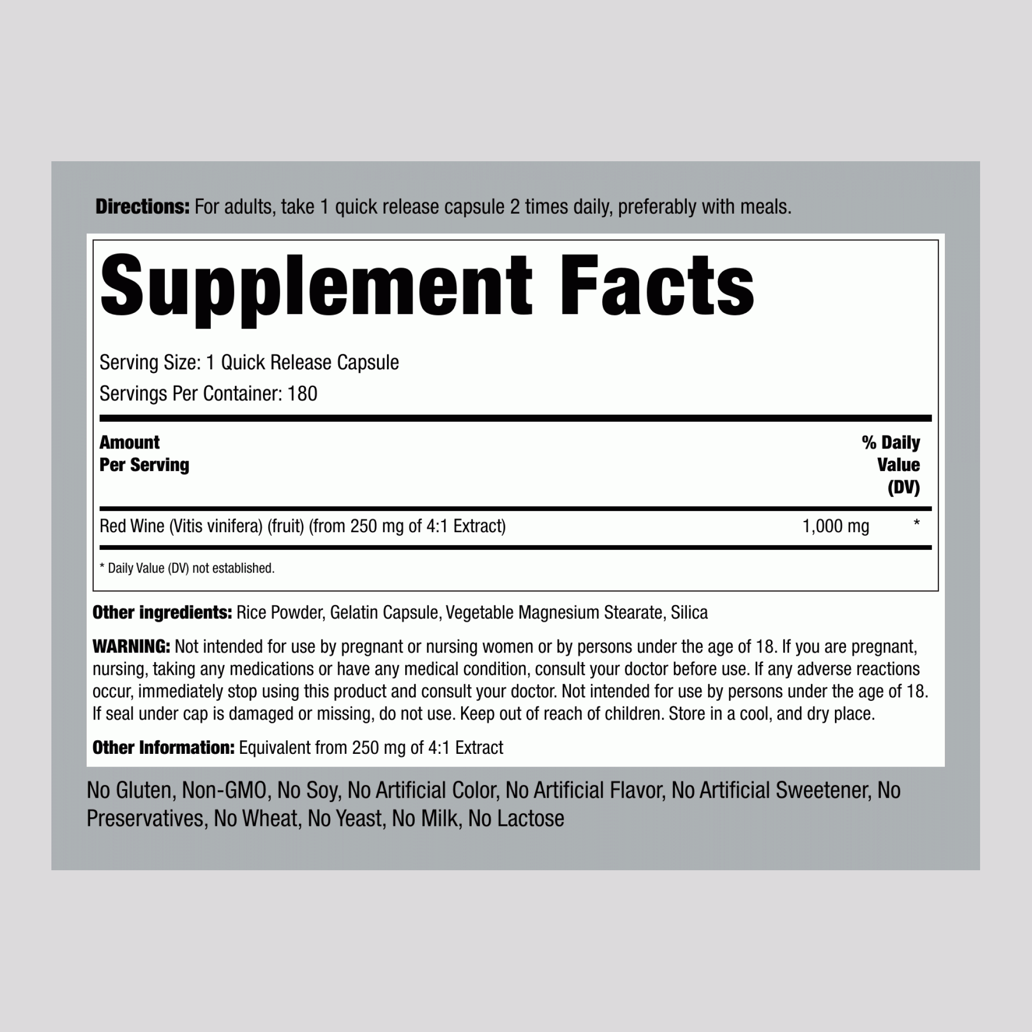Red Wine Extract, 1000 mg, 180 Quick Release Capsules
