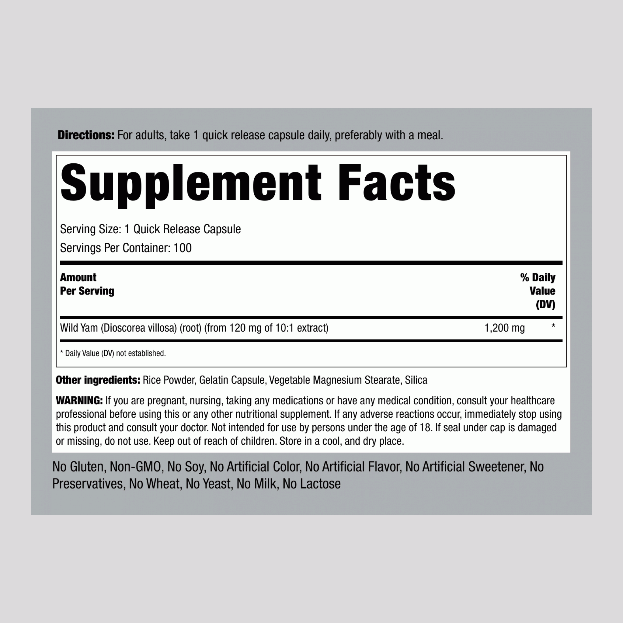 Wild Yam has been used by women for years during their midlife changes. A notable woman’s herb, you can get all the benefits today with our quick-release capsules! Each serving provides your body with the equivalent of 1,200 mg of this powerful time-tested root.