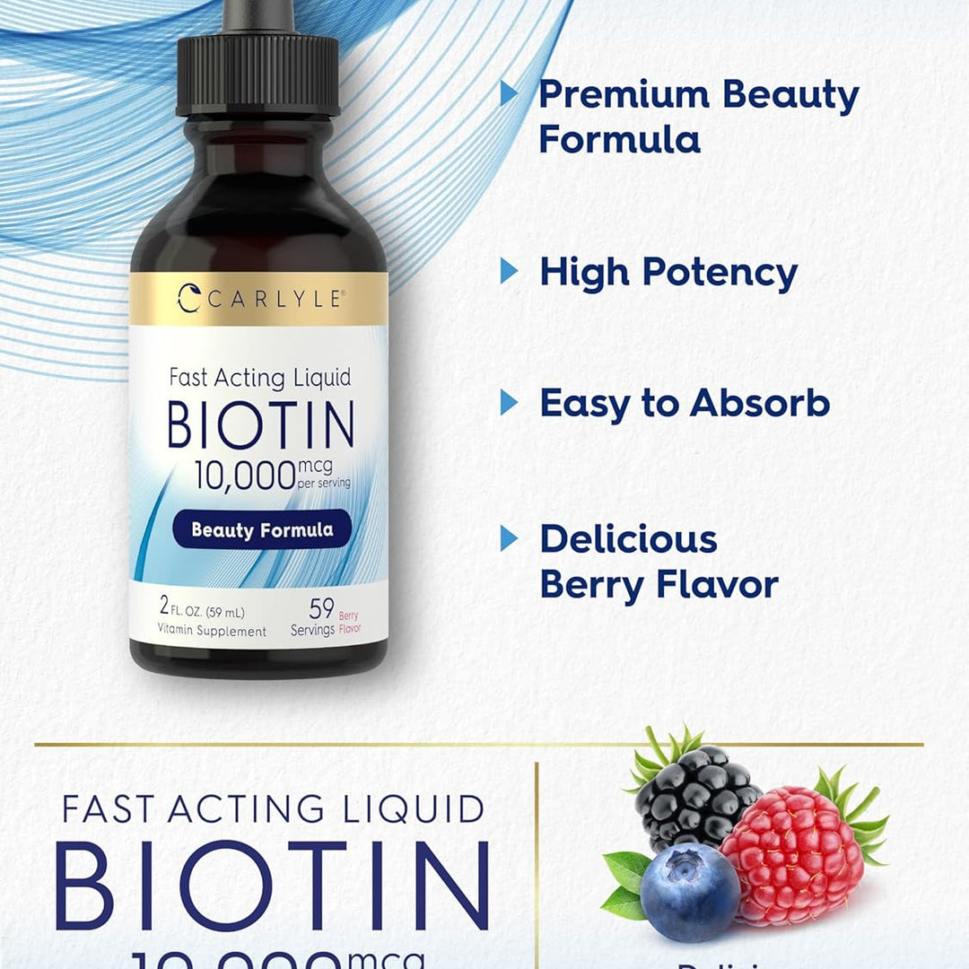 Жидкий биотин (ягодный), 10000 мкг (на порцию), бутылка с капельницей 2 фл унции (59 мл)